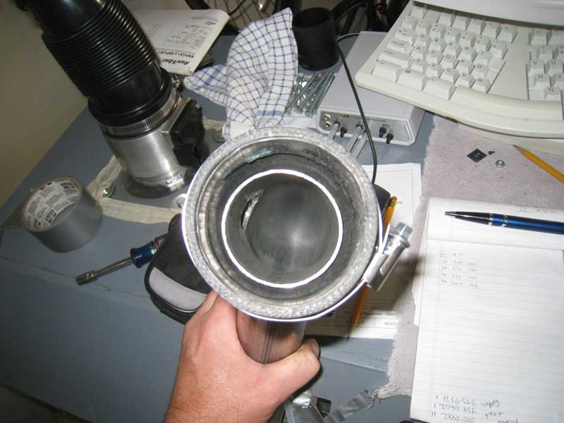 This test was done to evaluate if there is any impact on the airflow caused by the way the turbo inlet pipe is positioned inside the adapter, a reducing silicone hose, that connects the Y-pipe outlet to the turbo inlet pipe. The transition not only is a reduction in the pipe diameter but there is also flat surface presented to the airflow by the edge of the inlet pipe that is inside the coupler.