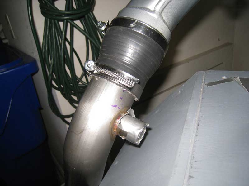 The setup utilized the RS4 y-pipe with one outlet capped off. The other end was attached to a short piece of the turbo inlet piping. On my car I have cut the inlet pipe into two sections roughly halfway along the length of the inlet pipe.