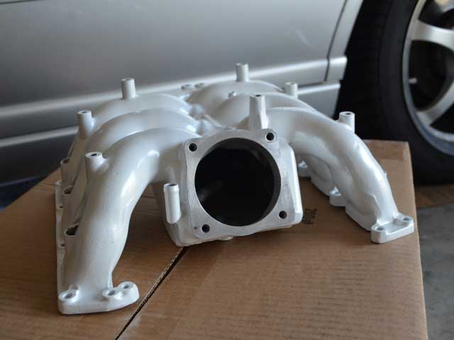 This particular item lies between two prior RS4 intake manifolds that I have evaluated in terms of modifications. Previously I tested a stock RS4 intake manifold and also a heavily modified RS4 intake manifold that had the Throttle Body inlet enlarged to accommodate an 80mm throttle body. The unit I have on hand is more closely related to the RS4 IM with the 80mm TB adapter, this unit also has an enlarged plenum and porting and smoothing, but retains the RS4 throttle body sizing at the IM inlet.