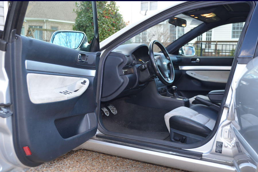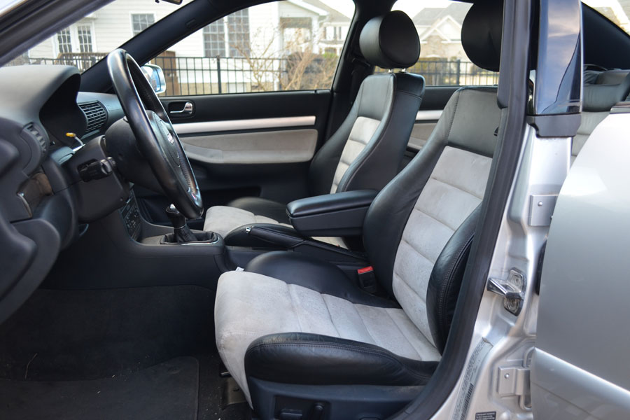 I liked my worn Silver Alcantara insert seats; enough to give up the all leather, black, heated seats that had 60,000 less miles of wear on them to get the Silver inserts back into the car. Fortuitously there was an S4 owner nearby who was looking for a good condition interior, so we met up and did a swap. Out with the black leather and accompanying door cards and in with the Silver Alcantara and aluminum belt-line trim. I still need to swap the trim from the front dash, but the interior swap is 95% complete.