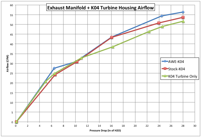 Results, along with results of just the K04 turbine housing without any exhaust manifold.
