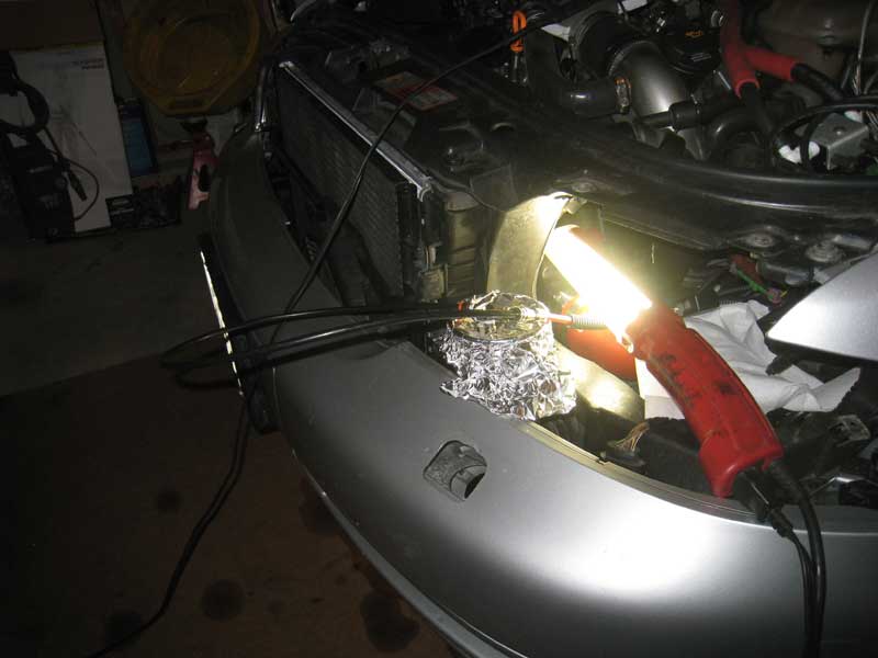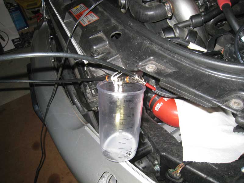 To capture the water from the nozzles I removed the nozzles from the APR bipipe, tied them together, and placed them in a measuring container with a piece of aluminum foil over the top to contain water mist or splashes.