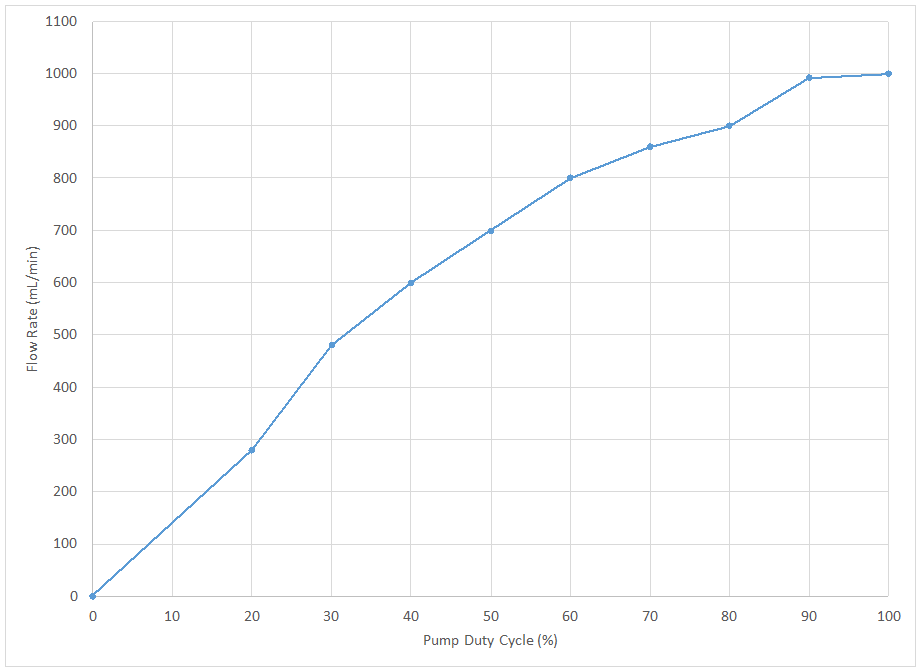 The pump duty cycle versus flow rate is shown below.