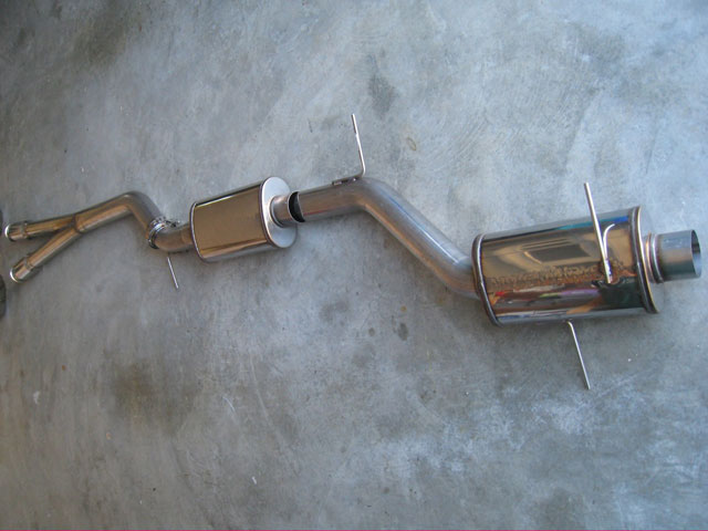 Here’s a picture of the full 034 exhaust setup that I have. This has 3″ mid-pipes with catalytic converters and two Magnaflow mufflers along the single 3.5″ section of piping.