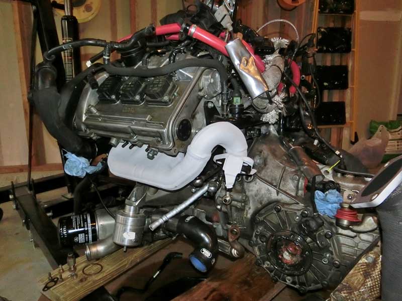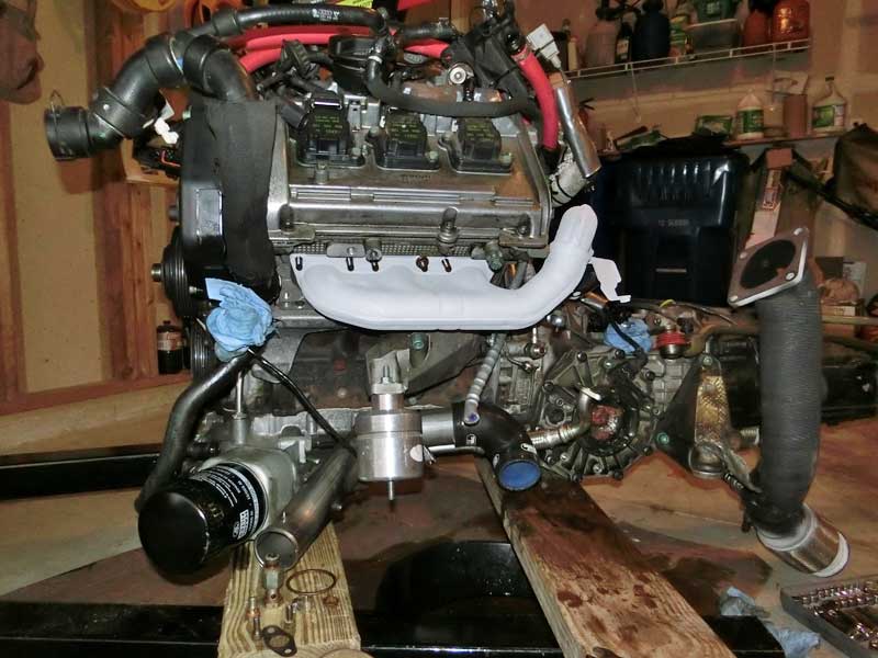 Completed the removal of the motor, 7 hours total doing it solo, and took the driver side turbocharger off. The K04 is just about ready to be installed.