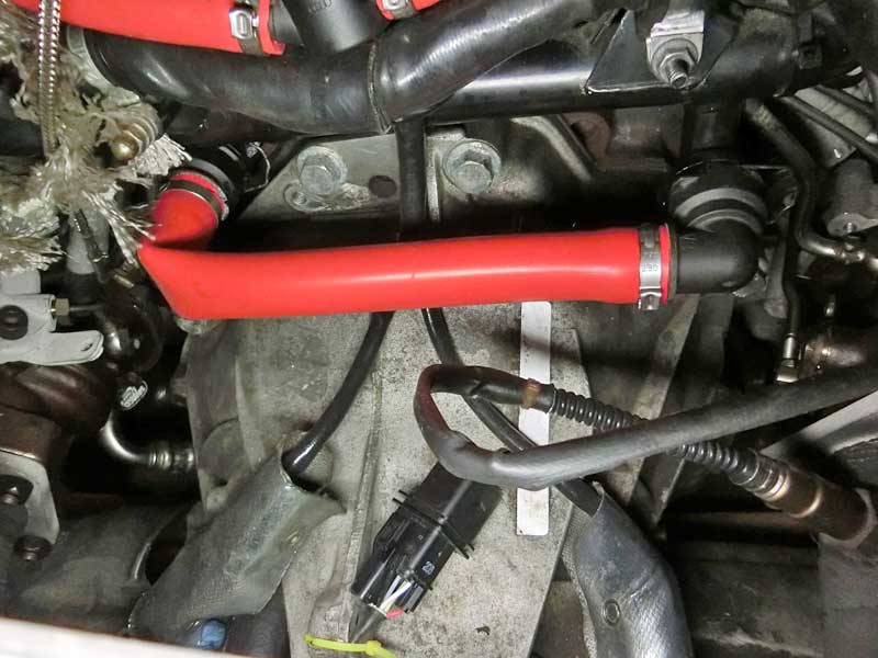 After the connectors were cut off the two coolant hoses I joined them together with an appropriate diameter silicone hose.