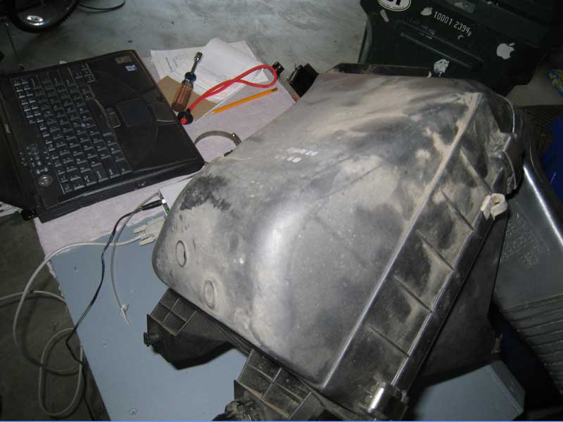 No snorkle – Airbox as it would be configured inside the vehicle except the entire snorkel was removed.