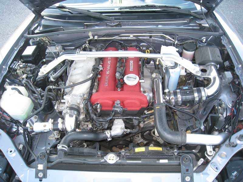My example came to me used from an owner who had done some minor modifications already; a Bell Engineering FMIC, Flyin’ Miata Intake System, Flyin’ Miata Downpipe with cat, Mazdaspeed Motorsports Springs, and Hard Dog roll bar.