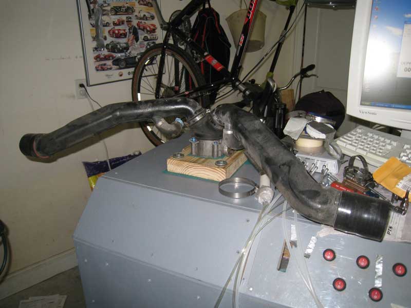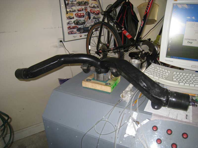 After securing the bipipe and throttle body to the bench a little more solidly, as well as plugging the DV hoses with diverter valves, instead of capping them, I ran the flow test again.