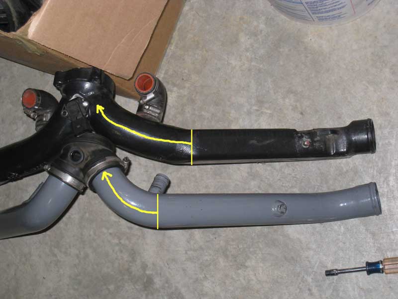 I was finally able to borrow a set of stock up-pipes to compare with the others that have been tested.