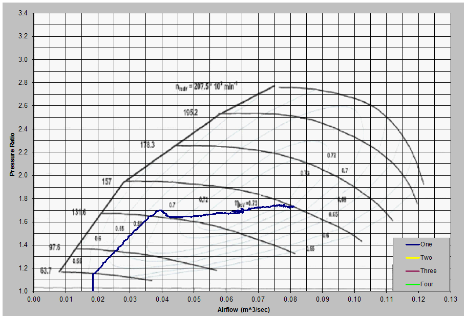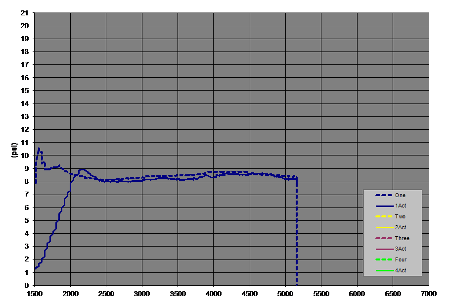 As expected the boost comes on quickly; for comparison a K04 size turbo would reach the 8-9 psi mark about 500 rpm later.