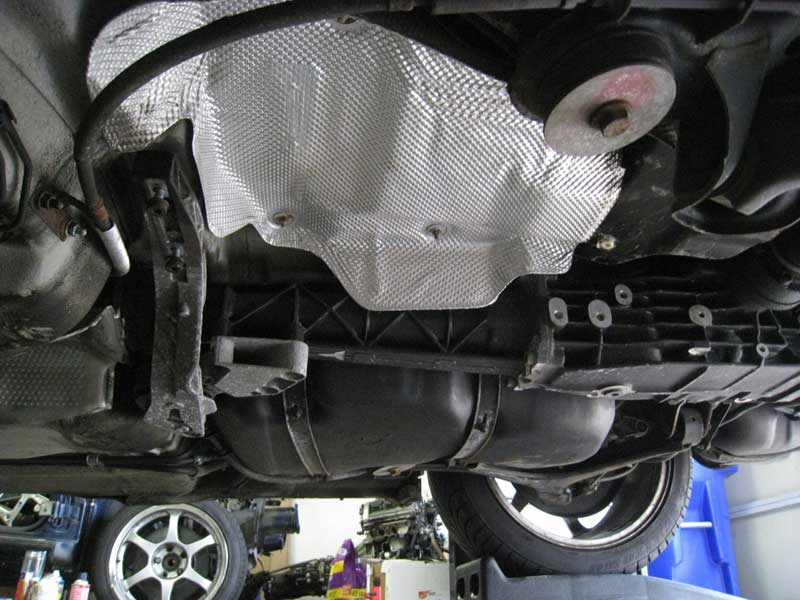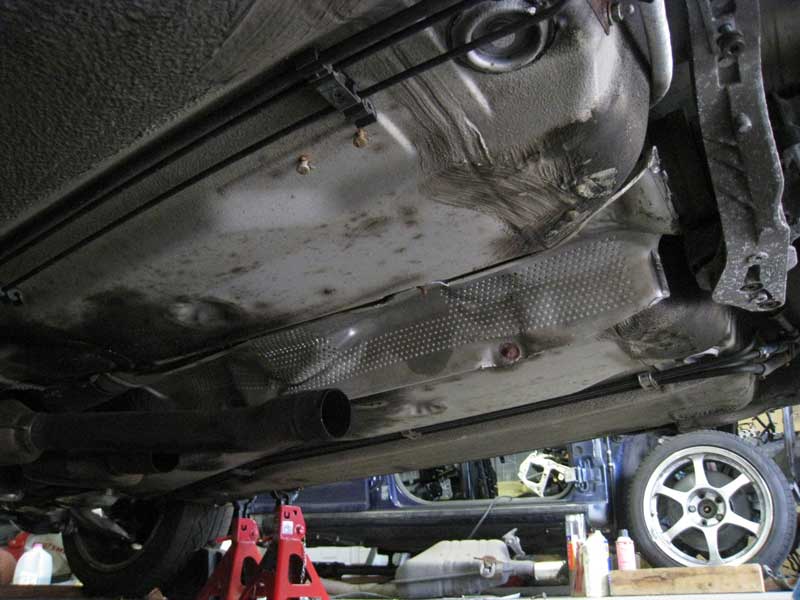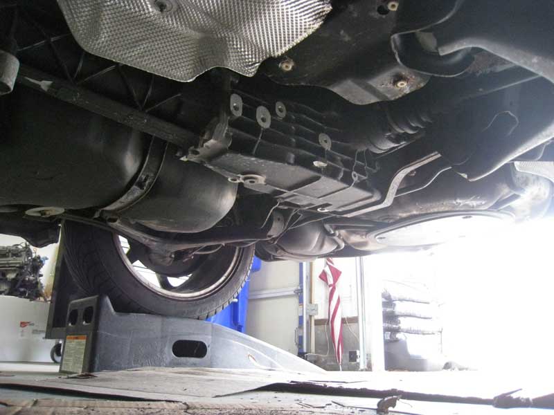 I returned underneath the vehicle and undertook the unpleasant task of loosening the drive-shaft from the rear differential and the transmission. I started with the rear differential. Getting the rear loose took quite some time so when I was finished I just took the shield off the front and hit the bolts with some liquid wrench and called it a day.