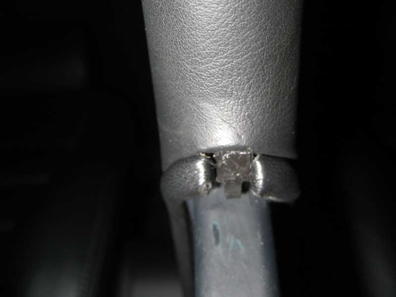 Taking the rear subframe off and swapping with the one from the Santorin car is my current goal. The thing is, in order to lower the subframe the parking brake needs to be loosened. Getting access to the parking brake mechanism requires removing the center console between the two front seats. To get the console out one first needs to get the handle grip off of the parking brake, and to get the grip off of the parking brake requires removing a locking pin that is on the underside of the handle, tucked back a ways that is hard to reach and basically impossible to view.