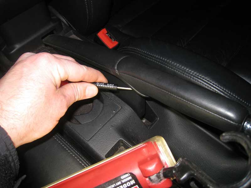 After getting the handle off the Bentley manual described the steps to remove the console. There’s a nut underneath the rear ash-tray that should be removed and then the rear of the console can lift up, after removing the 2 bolts holding the front down. I popped the ash-tray out and was presented with 2 nuts. Hmm. Guessing that perhaps the manual actually meant 2 nuts when it showed a diagram of just one I went ahead and removed both. The console would barely budge though. I worked at it for a while rocking the console back and forth thinking perhaps that over time it had seated itself really well, but that did nothing. Once more at the point of exasperation I decided to see if perhaps I could drop the parking brake mechanism without removing the console. It looked like if I removed the dual cup holder that might give me a shot at the parking brake mechanism. So I popped the cup holder out and found yet another nut of the type I had removed from the back of the console. This looked promising.