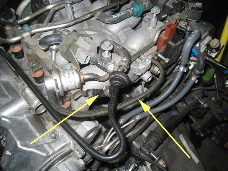 After that I started to look at some of the hoses that may need replacing. I saw that the car had the original 710A DV’s and since I was going to put 710N’s on I removed the older DV’s. In the process of doing that the fabric covered vacuum line began to disintegrate, signaling another part I’d need to replace. It was at this point that I discovered that I did not have small enough Oetiker clamps to fit on the small hose, so I paused that hose replacement effort. I also replaced a couple of the fabric covered lines on the back of the engine.