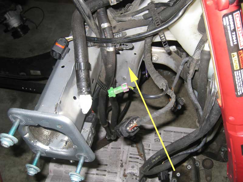The TIP cars have an extra bracket welded onto the coolant hard line that runs behind the engine. This was no longer going to be used and since I can anticipate needing to get my hands and arms back behind the engine at some point in the future I figured it would be prudent to get rid of that bracket to make maneuvering around back there easier. Out came a cutoff wheel and metal file and after about thirty minutes the bracket was gone and the remnants filed down smooth.