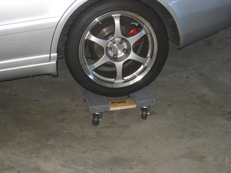 I’d contemplated getting a set of car dollies to move the rear of the car, but even an inexpensive pair was going to run around $60. While not an outrageous price, the fact that I really only planned to move the car with them once made purchasing them a bit of a waste. I noticed that Northern Tool also had wooden dollies designed for moving large furniture items and other heavy stuff. Surprisingly these wooden dollies were rated up to 1000 pounds and to my pleasant surprise they only cost $16 a piece. I wasn’t sure if the rear of the car was going to exceed their load bearing capacity, but for the cost I figured I’d give them a shot.