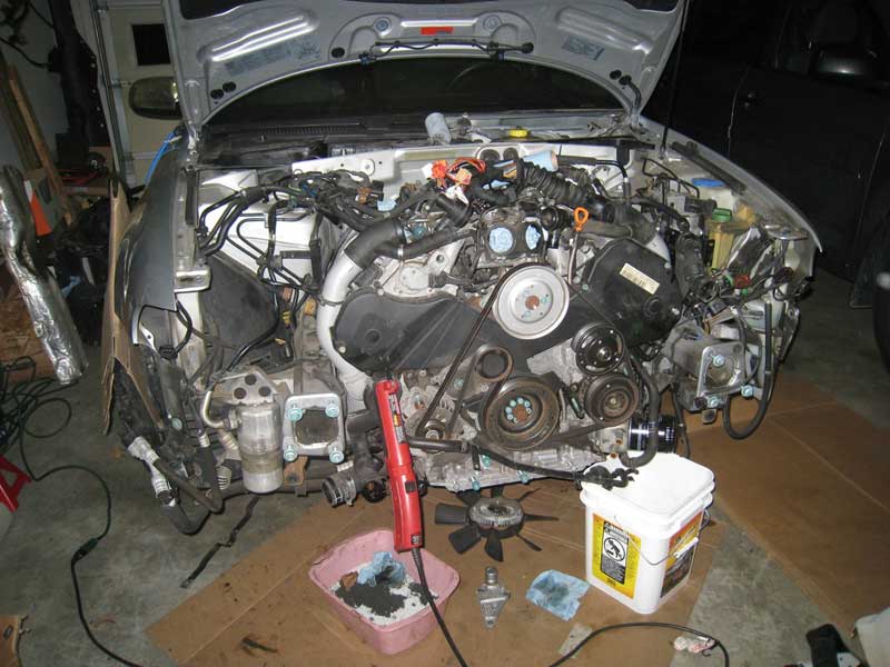I was moving along pretty quickly with the tear down of the front end until I started encountering new Tiptronic specific components. I had to spend some extra time determining what the parts were that I was taking off and drain the automatic transmission fluid.
