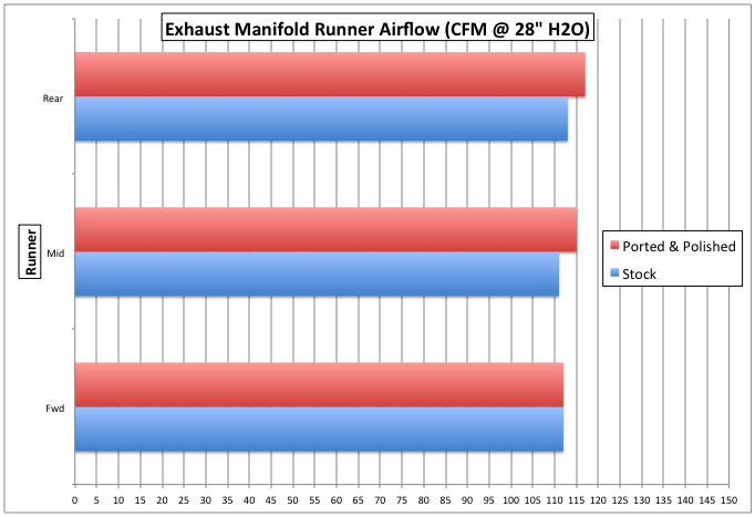 The results of the stock versus ported exhaust manifold flow test are shown below.