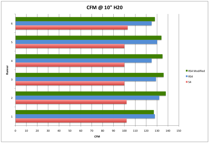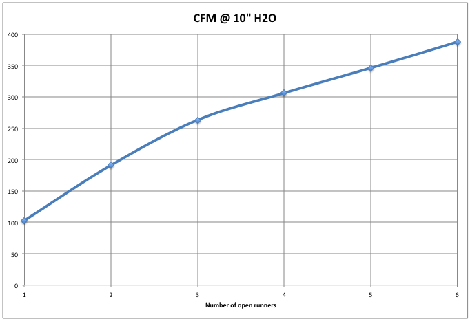 Shown above is the individual runner CFM at 10″ H2O along with the total airflow with all runners open.