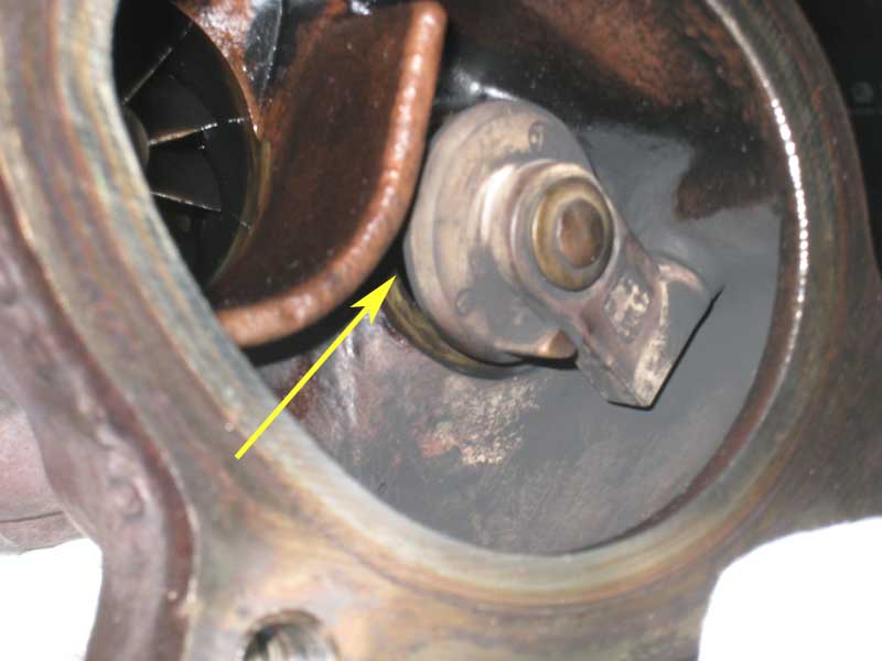 To assess the amount of additional air that can pass through the turbine housing with the wastegate door open I loosened the nut holding the wastegate shut. I positioned the nut at the end of the wastegate rod, so that the nut was flush with the end. This position was selected for ease of repeatability and because it allows the door to open to the maximum extent while the nut is still on the actuator arm.