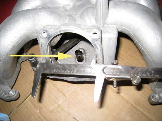Upon evaluating the physical construction of an intake manifold it became apparent that trying to determine the affect of the phenolic spacers on intake air temperature on a running motor would be exceptionally difficult. The typical way of addressing changes to intake air temperature are to look at the data being provided by the engines intake air temperature sensor. But this sensor is located just behind the throttle body opening, a distance of 4 cm inside the intake manifold (picture 1). The likelihood of air flowing into the manifold being affected at all by the temperature of the manifold so that the intake air temperature sensor could register such change seems very remote. Consider this, at idle the air is entering the manifold at approximately 40 meters per second, or to put it another way, the air is inside the manifold for roughly 0.09 milliseconds before passing over the intake air temperature sensor.