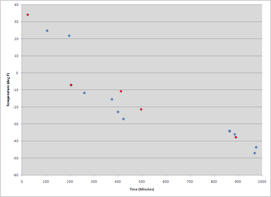 My solution to this challenge was to capture some of the air temperature data when the engine was shut off, this would cause the air inside the manifold to be stationary. The temperature then reported by the air temperature sensor would be more indicative of the condition inside the manifold at that time since the air would have a chance to be warmed by the manifold walls.