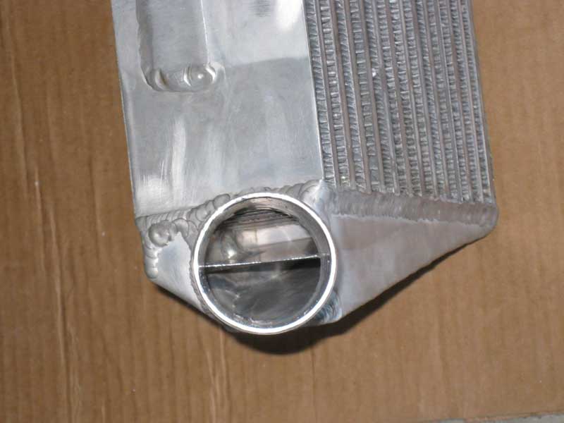 This is something new compared to the other intercoolers I have tested thus far. The plate apparently is to keep some of the incoming air directed to one half of the core and the remainder of the charge air going to the other half of the core, without the two streams mixing.