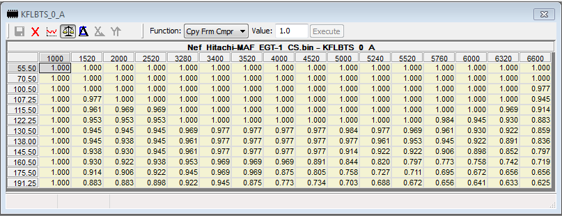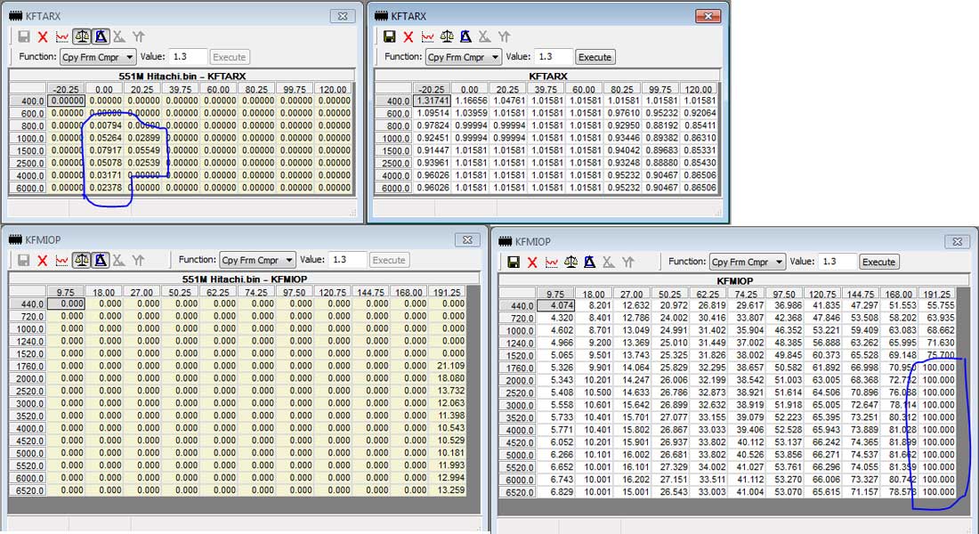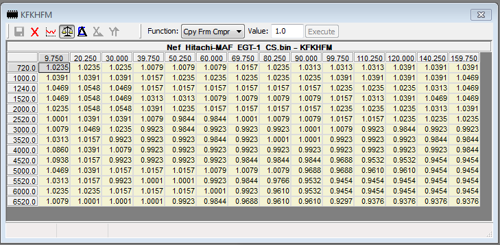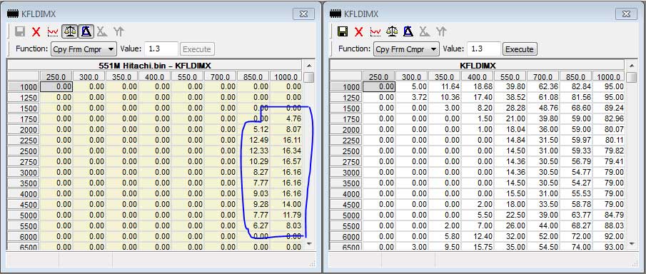 The table below was changed earlier, I forgot to mention it previously, KFMLDMX is raised to give some more headroom with the potential extra airflow now being generated. These are the changes that were made and that are in now place with the development tune: