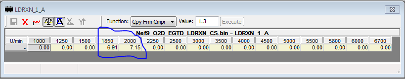 LDRXN has also been slightly tweaked, increasing the 1850 and 2000 rpm places by the values shown below.
