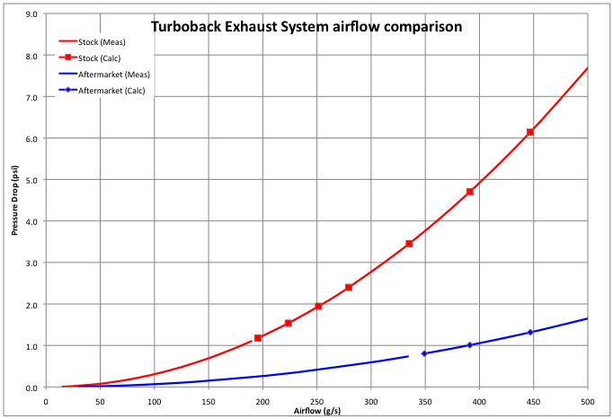 Flow testing the full B5 S4 turboback exhaust system and comparing to the results of testing the Autospeed downpipes and 034 Motorsports 3.5″ single (3″ mid-pipes with dual Magnaflow mufflers) exhaust system.
