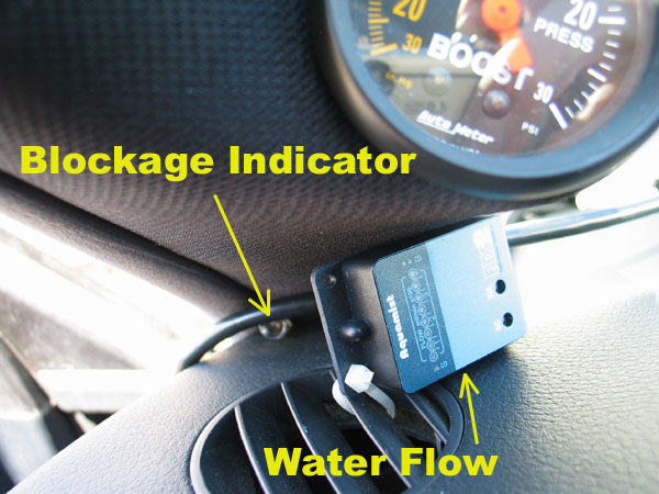 The water injection system requires no involvement from the driver once it has been configured and powered up, other than monitoring the water flow gauge and blockage indicator to ensure water is flowing to the engine. The primary components of the 2d system are a fuel injection amplifier, adjustable pressure switch, high-speed valve, and 100-psi pump.