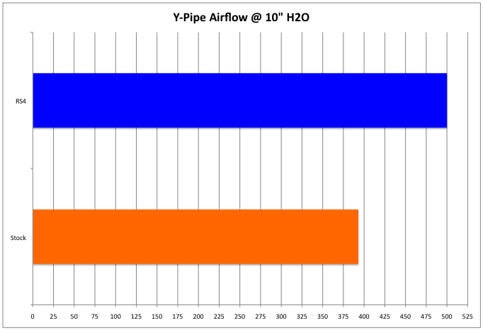 Not surprisingly the RS4 y-pipe outflowed the stock y-pipe by a good amount.